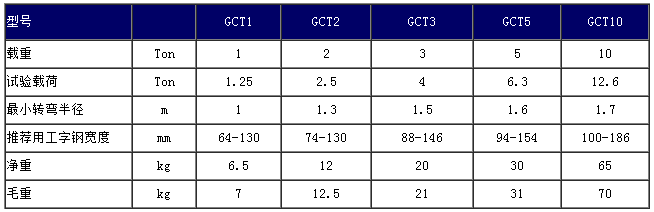 GCT-1單軌小車的技術(shù)參數(shù):
